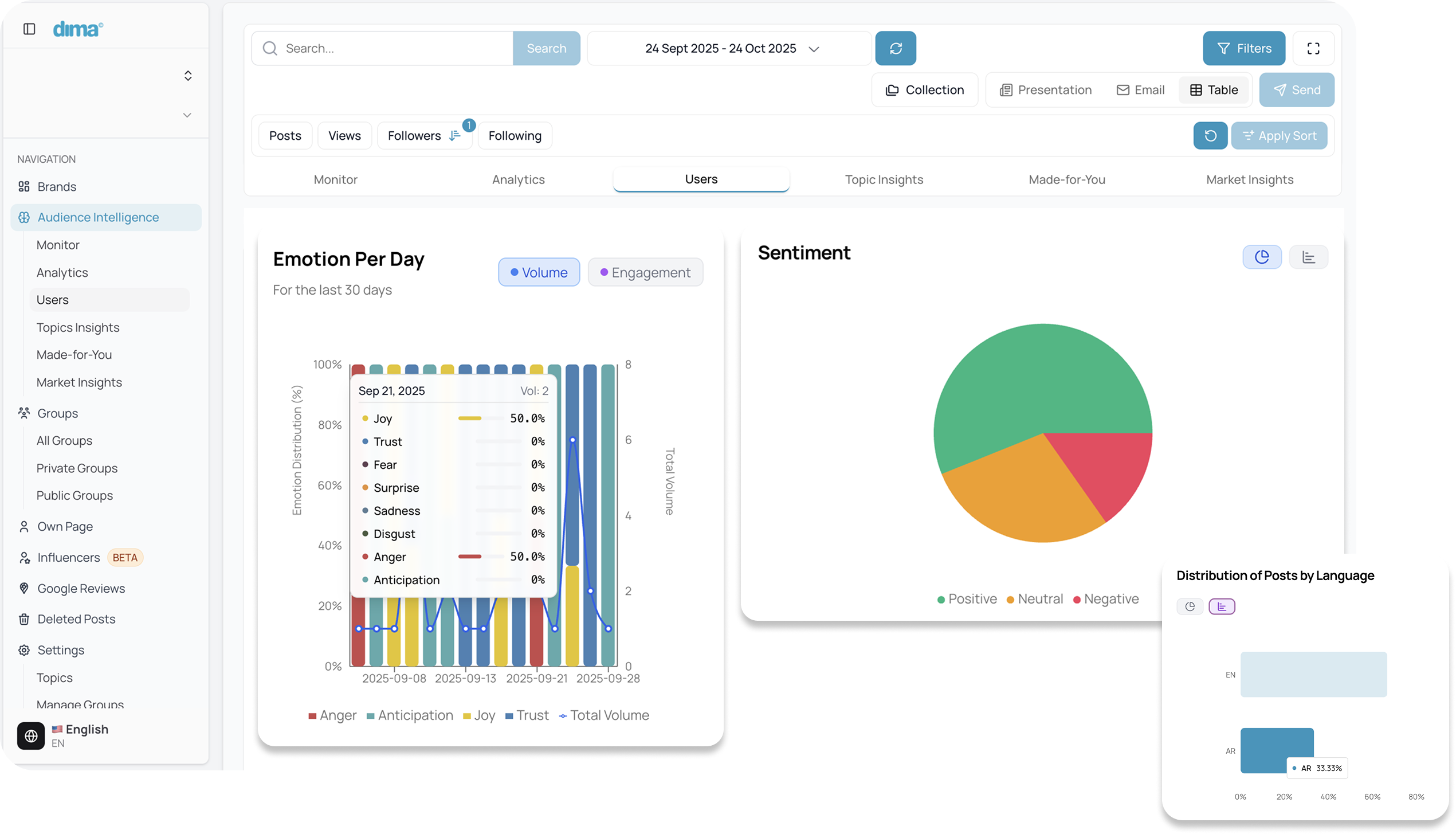 Discover how dima’s arabic-first AI empowers your team with unparalleled monitoring, real-time insights, and competitive benchmarking